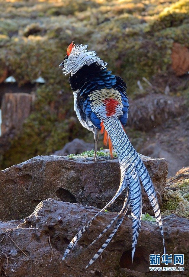 丽江老君山,摄影师在林间拍摄到一只美丽的白腹锦鸡(摄于3月7日)。新华网发(李树靖/摄)