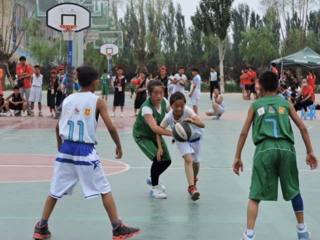 但是当时可能闽宁镇小学的老师没有准备好,再加上学生、家长等各方面的条件也都达不到,有的孩子就穿着布鞋打篮球,因为篮球场的地板是木的,他连跑都不敢跑,跑的快了也停不下来,老是在地板上“呲溜”。当时心里就特别难过。我觉得,别的地方的孩子不仅训练到位,还有战术应对,我们闽宁镇的孩子连双篮球鞋都没有。