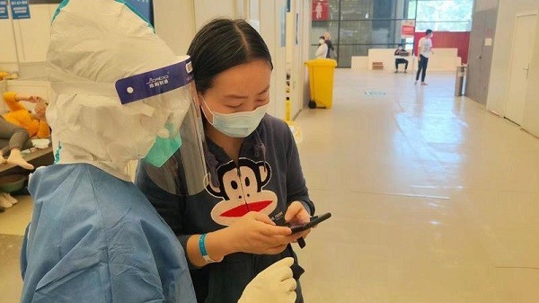 在那天晚上的“呵‘沪’朋友 拥抱希望”心理减压团辅活动中,武汉协和医院援沪医疗队护理三组的队员们带领患者边唱边跳《最炫民族风》。这些方舱“老将”捡起两年前学习过的简单手指舞,与患者们一起挥舞着手臂、舒展肢体,瞬间拉近了医患距离,患者们露出笑容。活动结束后,还组建了“人间四月天”抗疫医患微信群,相互鼓励。