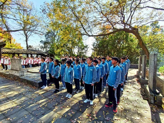 每年9月3日(抗战胜利纪念日),在烈士纪念塔广场举行盛大高一新生开学典礼;高三学生离校前最后一个活动,是向烈士墓碑告别宣誓……“爱国教育是学校的传统,‘品格至上、忠孝为先’是我们品格教育的主题。”野寨中学党总支书记、校长徐汉夫说,这首先体现为学校在每个和抗战、烈士相关的节日节点,都会开展活动。