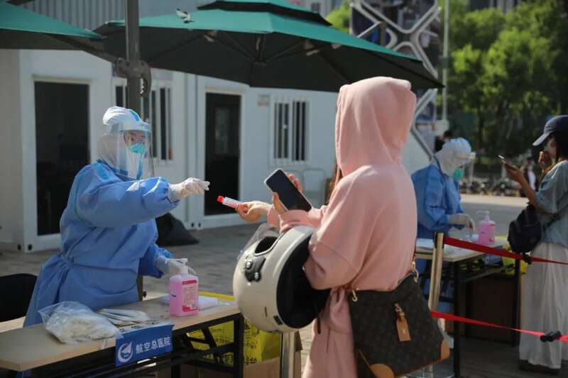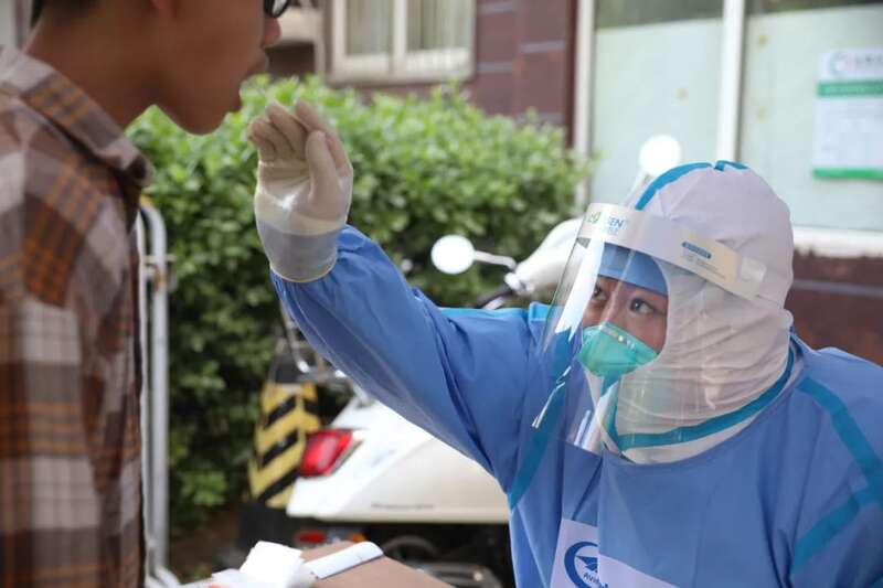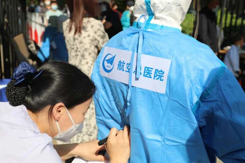 由于部分采集点人流量大,日均采集量达1万人次左右,航空总医院医护人员一刻不敢懈怠,消毒、采样、密封,消毒、采样、密封……一套看似简单的采集动作,他们每天重复数千次,“大白”装备一穿就是几个小时。“我是年轻人,关键时刻要顶上去,绝不退缩!”一名90后“大白”说。