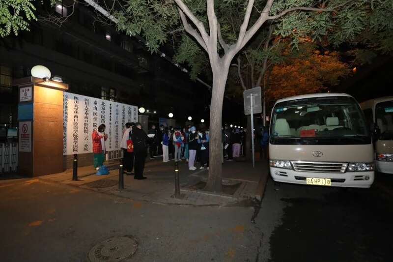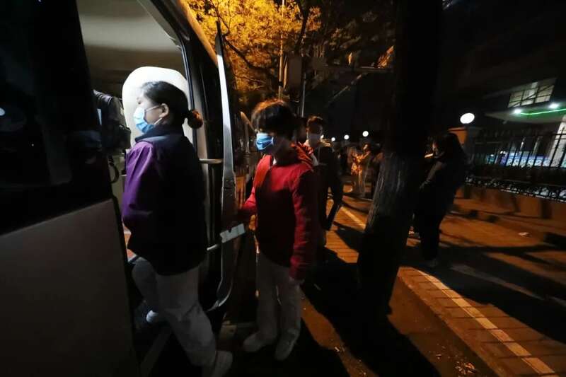 凌晨4点,航空总医院医务人员集合出发,前往各自核酸采集点。
