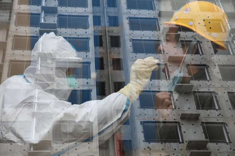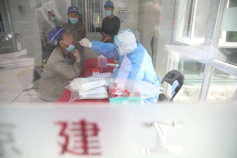 航空总医院“大白”深入工地为建筑工人采集核酸。