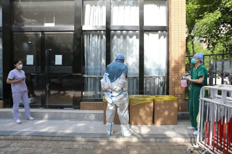 医务人员准备换岗,开启新一轮的核酸检测工作。