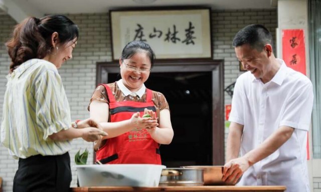 家里的农家乐生意好起来了,潘春林想着带村民一起致富。他当上了乡宿联盟主席、天荒坪农家乐协会党支部书记,带着大伙儿一起分享客源、提高服务质量。“以前我在矿上工作,整天灰不溜丢,如今干干净净,安全和健康也有保障,”潘春林说,“牢记总书记嘱托,走对了路子,日子越来越红火。”