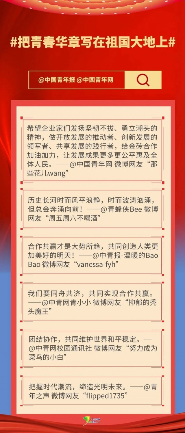 习近平主席的主旨演讲向世界传递了中国将进一步加强同金砖国家及其他各国合作、实现共同发展的坚强决心和重要信号。希望青年朋友们明白,中国始终担当着推动互惠合作、互利共赢、构建人类命运共同体的大国责任。在新征程上,希望青年朋友们坚定自信,以开放包容的态度面对世界,大力发扬历史主动精神,准确认识历史发展规律,不为一时一事所惑,不为风险所惧,勇敢面对挑战,向着构建人类命运共同体的目标勇毅前行!