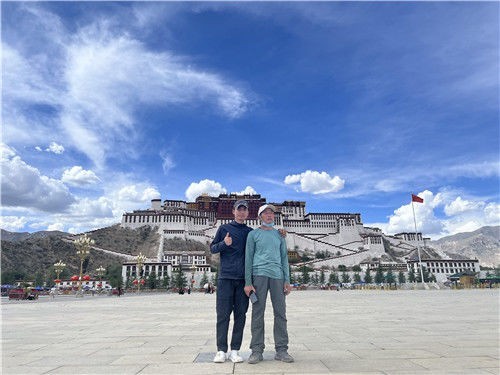 (赖都和爷爷在布达拉宫前合照。受访者提供)