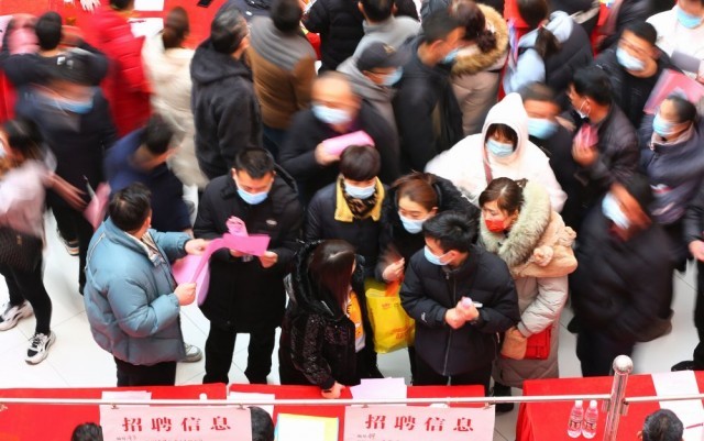 2022年2月19日,山东省滕州市举办“春风送岗”春季人才招聘会。新华社发(李志军摄)