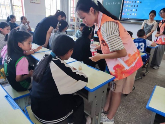 川农向阳花·渔樵耕读团队成员为小朋友发放太阳花种子。本组图片由四川农业大学团委提供