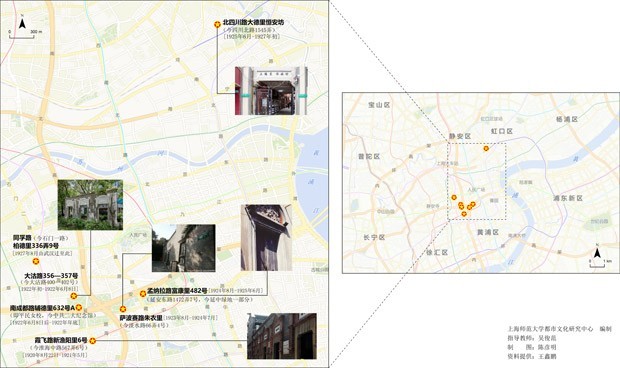 图一:首次考证绘制的早期团中央机关在沪7处旧址图