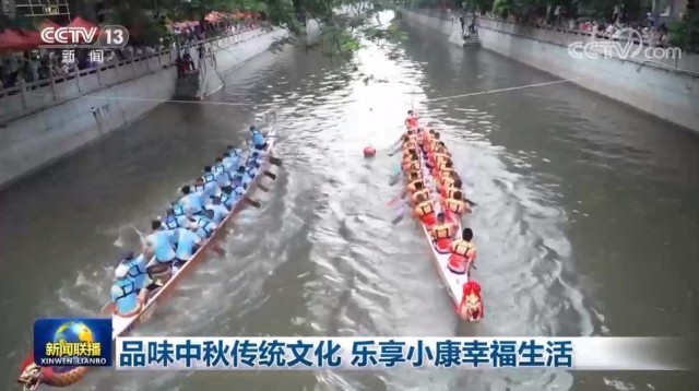 在广州,猎德村里鼓声阵阵,一场中秋龙舟赛正在进行。村民们用龙舟竞技的方式表达节日的欢乐,鼓舞在乡村振兴路上不断向前。在云南大理、黑龙江同江、兰州新区等地,人们制作当地风味的传统月饼,祈愿小康生活更加和和美美。在青海海东,村民还在月饼上捏出花卉、动物等面塑,色彩鲜艳,喷香扑鼻。