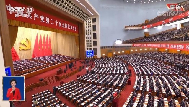 中国青年报客户端北京10月16日电(中青报·中青网记者 张国)中国共产党第二十次全国代表大会10月16日上午在人民大会堂开幕,大会堂二楼眺台悬挂的巨大标语更新为:“高举中国特色社会主义伟大旗帜,全面贯彻习近平新时代中国特色社会主义思想,弘扬伟大建党精神,为全面建设社会主义现代化国家、全面推进中华民族伟大复兴而团结奋斗!”