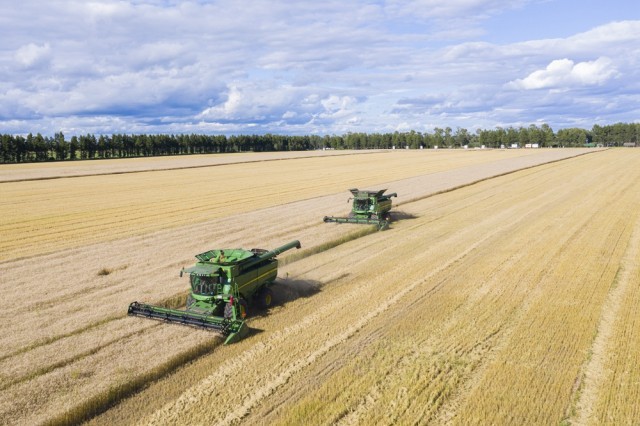图为2022年8月10日,联合收割机在黑龙江北大荒集团红星农场有限公司田间收获小麦。新华社记者 谢剑飞/摄