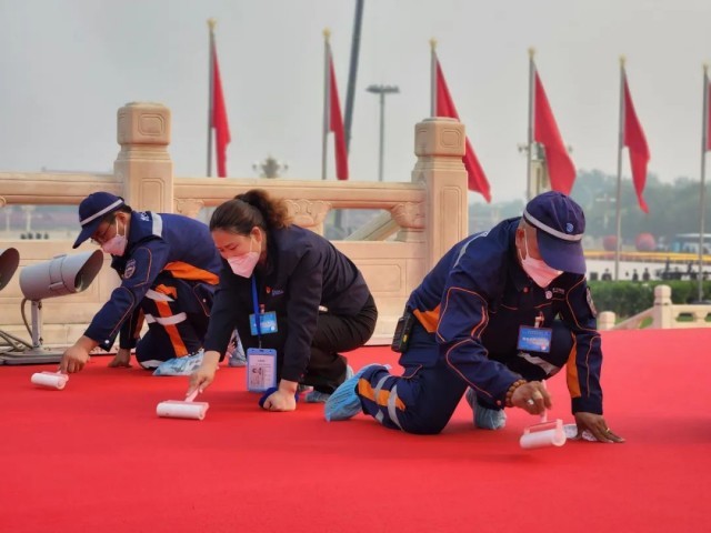 每年这一天即将到来时,蔡凤辉和同事们都是提前加入筹备工作中。“人民英雄纪念碑下的红毯是保障的重点,我们采用‘清、扫、吸、粘、擦’等五步作业法,精细化作业。”在蔡凤辉眼里,坚守岗位,做好清洁保障,也是向英烈致敬的一种方式。