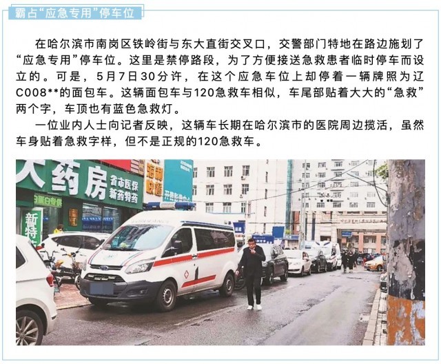 2021年5月,生活报对哈尔滨山寨救护车乱象的报道。 黑龙江日报微信公众号截图