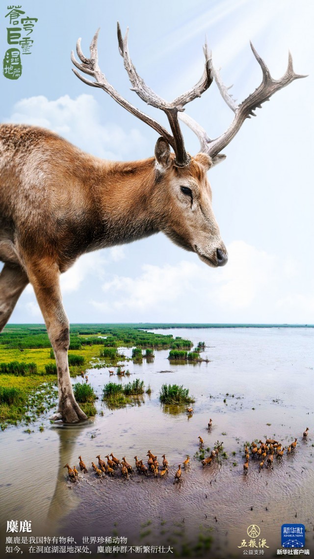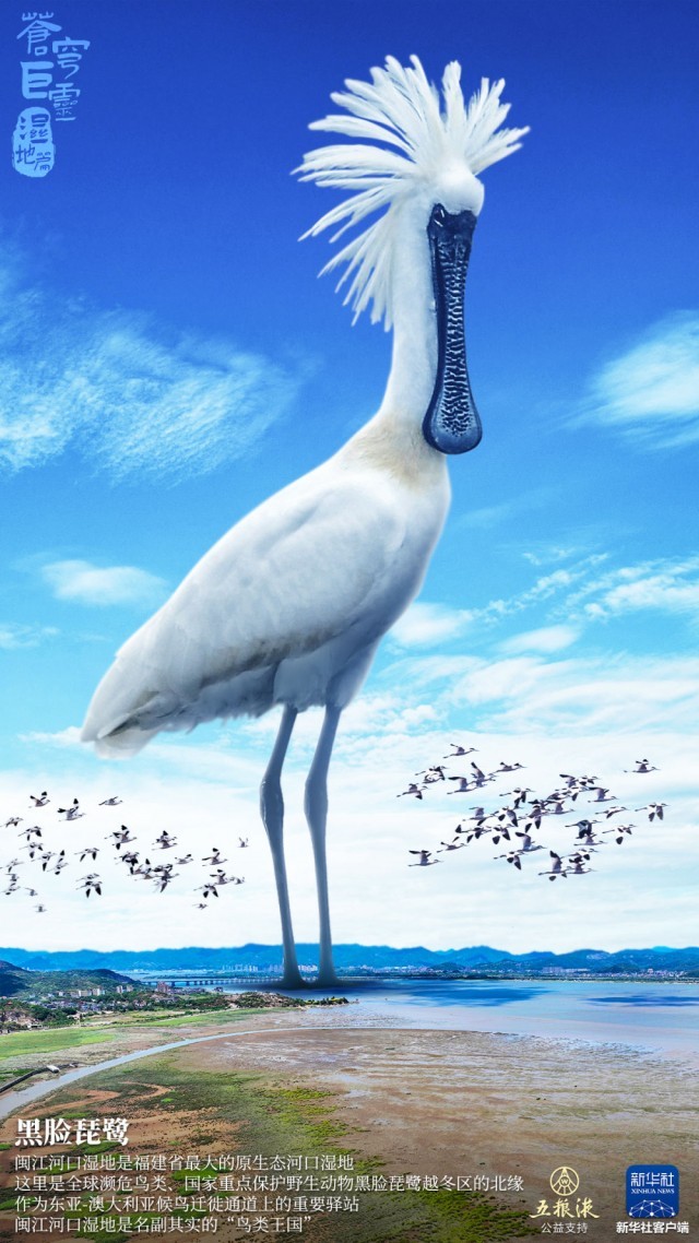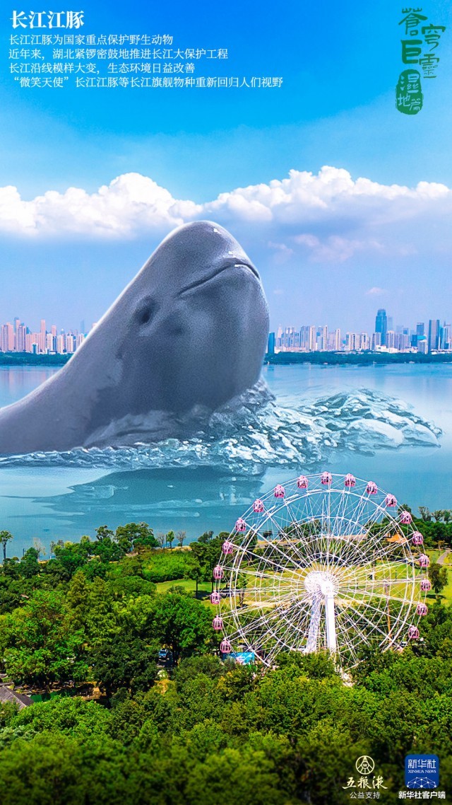 新华社播发一组创意海报《苍穹巨灵·湿地篇》,点亮武汉街头。