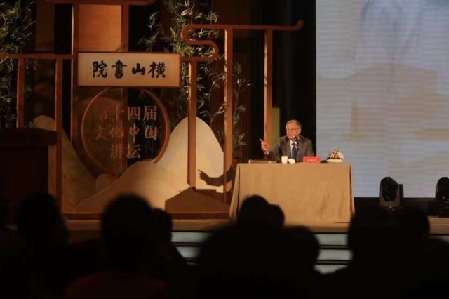 11月6日,浙江省杭州市萧山区,第十四届文化中国讲坛现场,全国政协文化文史和学习委员会副主任、文化中国讲坛发起人之一叶小文开讲。 中青报·中青网记者 孔斯琪/摄