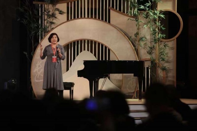 11月6日,浙江省杭州市萧山区,第十四届文化中国讲坛现场,北京大学中文系教授、博士生导师程郁缀做主题讲座。中青报·中青网记者 孔斯琪/摄