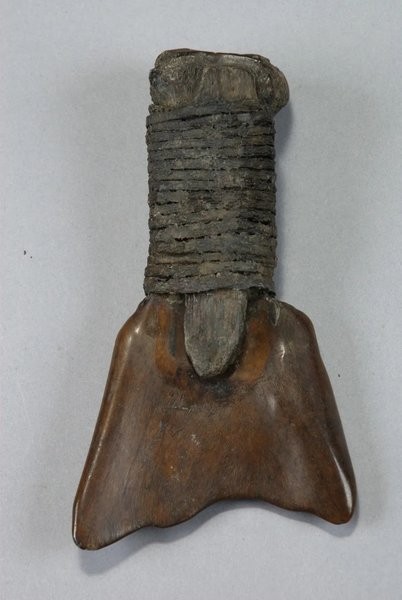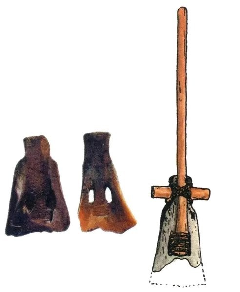 河姆渡遗址出土了170多件骨耜,其中2件骨耜的柄上,还遗留着藤条绑扎着的木棒残端,其清晰程度让人震惊,把7000年前骨耜是如何用于耕作的功能展现无遗。