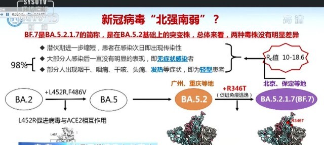 中国工程院院士 钟南山:现在的新冠病毒奥密克戎是北强南弱,是不是真的是这样情况呢?大家看,实际上,北方是叫BF.7,是在BA.5.2基础上突变的。北方(毒株)潜伏期进一步缩短,大部分人在感染后一直没有很明显的症状,有一部分人出现咽干、咽痛、干咳、头痛、发热等。实际上从医学来看,这些只要不侵犯到肺,只要不产生低氧,都是轻症。但是可能很不舒服,发热发的高或者是全身疼痛,使得患者觉得很不舒服。但是他这个不舒服跟医学上的重症、轻症是两回事,不是说疼痛越厉害就说明你一定是重症。所以,从这个看起来,应该说南边跟北边这两样(毒株)没有本质上的区别。
