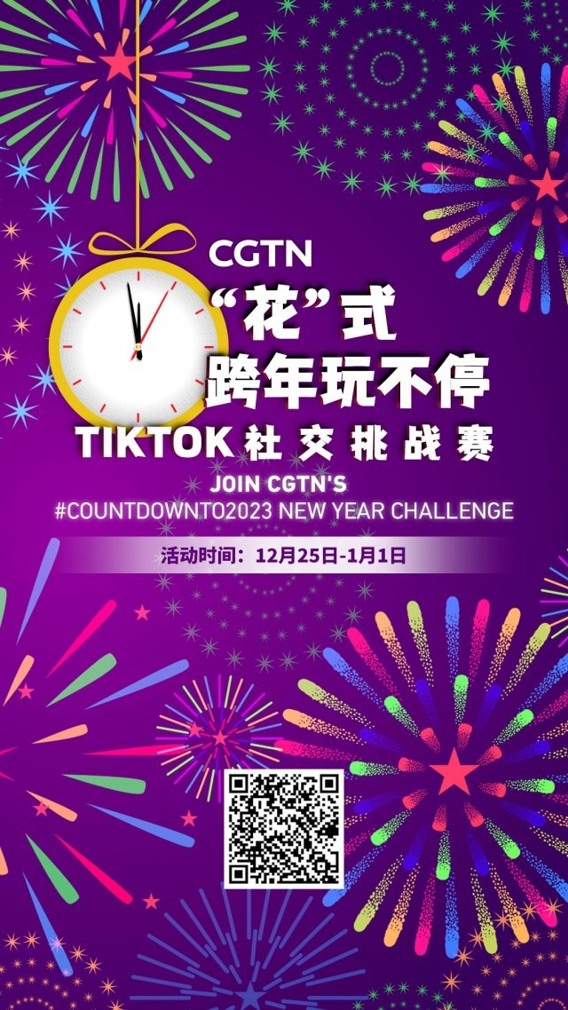 CGTN新媒体《“花”式跨年玩不停》将在TikTok等海外社交平台发起“花”式创意跨年挑战赛,以烟花象征“灿烂美好”这一东西方互通的文化寓意为出发点,邀请海外网友参与创意打卡,一起“花”式跨年,共享迎接新年的美好时刻。