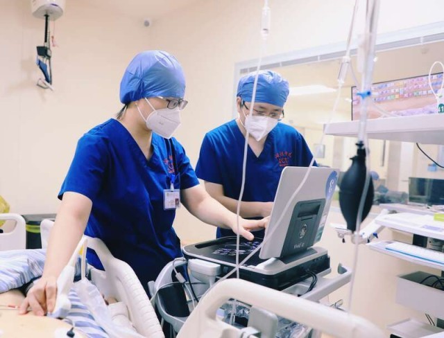 中南大学湘雅医院重症ICU内,张丽娜教授在用重症超声评估患者病情。(受访单位供图)