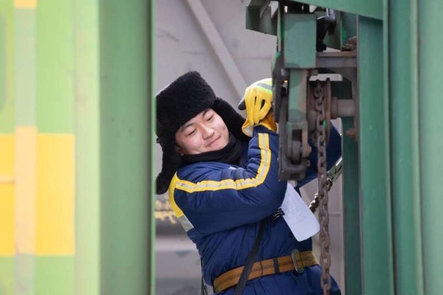 调车作业时,徐梦泽站在首辆敞车的车梯上眺望前方,列车启动带起的寒风和雪粒一起吹来,打得他眼睛睁不开。徐梦泽说,附着寒霜的铁质车皮像个冰坨子,又冷又滑,必须集中注意力,才能牢牢挂在行进的列车上。短短几分钟,他浑身上下就被冻透了,待停车后得稍微挪动身体,缓一缓,才能从车上下来。