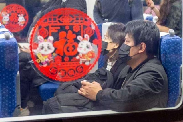 1月15日,广深港高铁恢复运营,车厢里有浓浓的年味。陈俊彦/摄