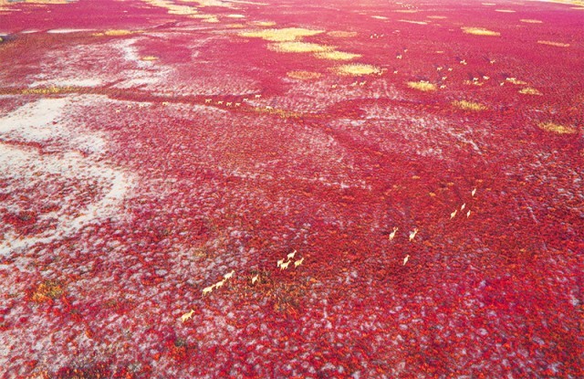 江苏省盐城市拥有582公里海岸线、76.97万公顷湿地,孕育着太平洋西岸和亚洲大陆边缘面积最大、生态保护最好的海岸型湿地。2019年,位于盐城市的中国黄(渤)海候鸟栖息地(第一期)成功列入世界遗产名录。图为2022年11月9日,在盐城东台条子泥湿地拍摄的麋鹿(无人机照片)。 新华社记者 杨磊/摄
