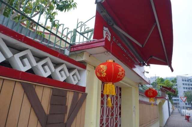 1月23日,香港沙田区一国际幼儿园门口挂着红灯笼。