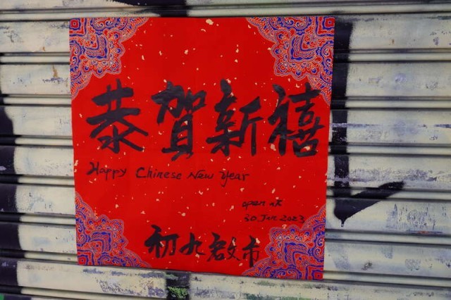 1月22日,香港中环石板街,商家贴出歇业过春节的中英双语告示。