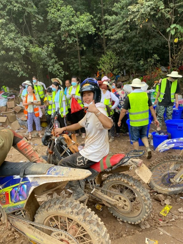山火救援现场,志愿者骑手们整装待发。