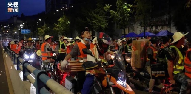 许多人自发骑着摩托车赶来帮忙