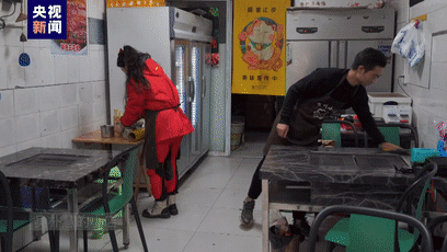 吴朴慧和陈成在店里忙碌