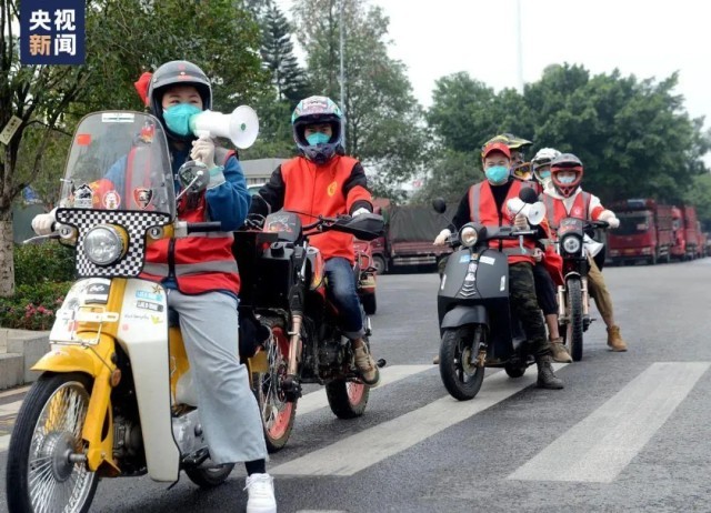 还有来自四面八方的骑手志愿者