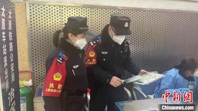 “各位旅客,春运期间出行人多拥挤,请大家过安检后及时检查自己随身携带的行李物品,以免遗漏或误拿影响后续出行。”2023年春运正在进行,山西太原火车站进站口,民警刘学强和李晨俊穿梭在人群中,不断向旅客发出提醒。