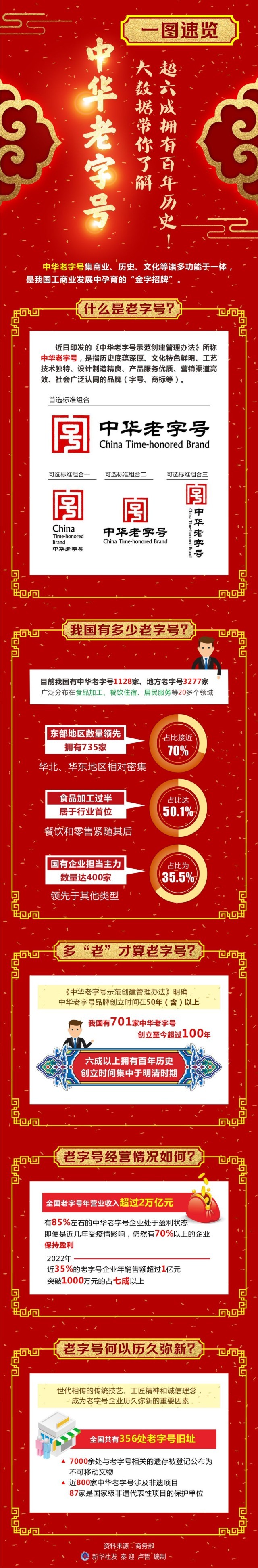 目前,我国有中华老字号1128家、地方老字号3277家。其中有701家中华老字号创立至今超过100年。