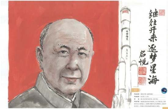 所以,当我收到第二届“天宫画展”的征稿通知时,一刹那,一幅画面就浮现在我的脑海:精神矍铄的钱爷爷,正在用他那炯炯有神的双眼、标志性的微笑,赞许地凝视着“中国航天”飞天的壮美瞬间,那背景中摇曳着的“中国红”,正是一代代中国航天人用热血铸就的!