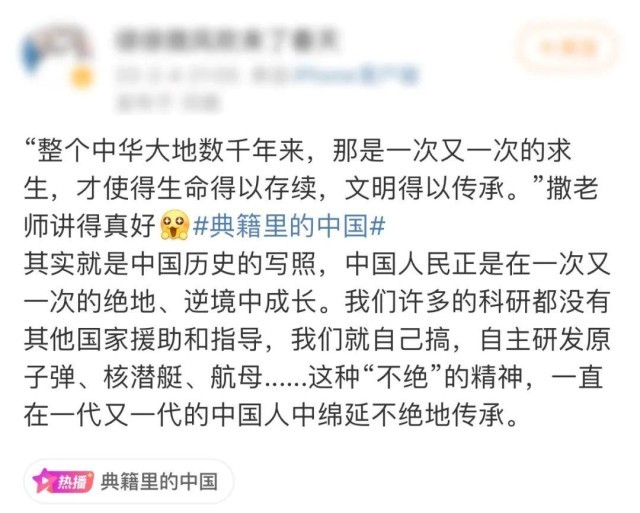 节目成功传递了杰出典籍蕴含的精神内核和文化灵魂,激发了观众内心对中华民族优秀传统文化的认同。