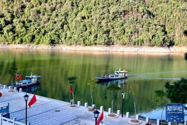 一艘渡船驶往小沧畲族乡码头(2月17日摄,无人机照片)。新华社记者 姜克红 摄