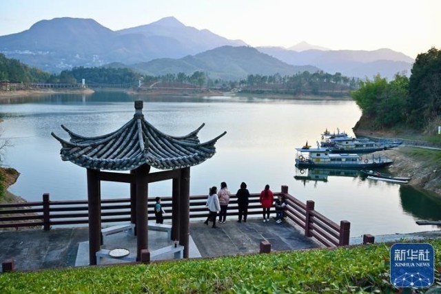 小沧畲族乡居民在湖边休闲(2月16日摄)。新华社记者 姜克红 摄