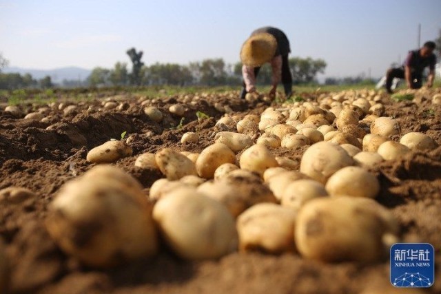 2月19日,在福建省厦门市翔安区内厝镇许厝村,农民在蔬菜基地里采收马铃薯。新华社发(曾德猛 摄)