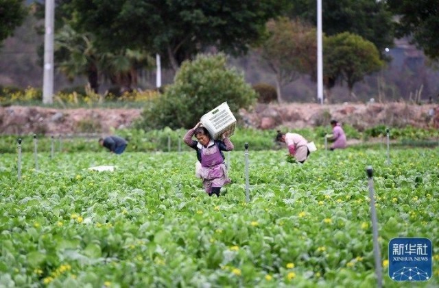 2月19日,农民在贵州省榕江县车江坝区蔬菜基地采收蔬菜。新华社发(杨成利 摄)