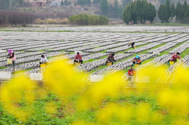 当日是雨水节气,各地农民抢抓农时,开展春季生产,田间地头一派忙碌景象。