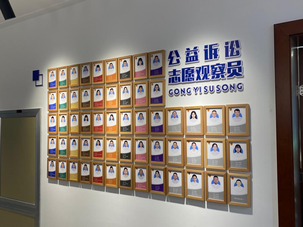 图为海宁市人民检察院公益诉讼志愿观察员介绍墙。新华社记者吴帅帅 摄