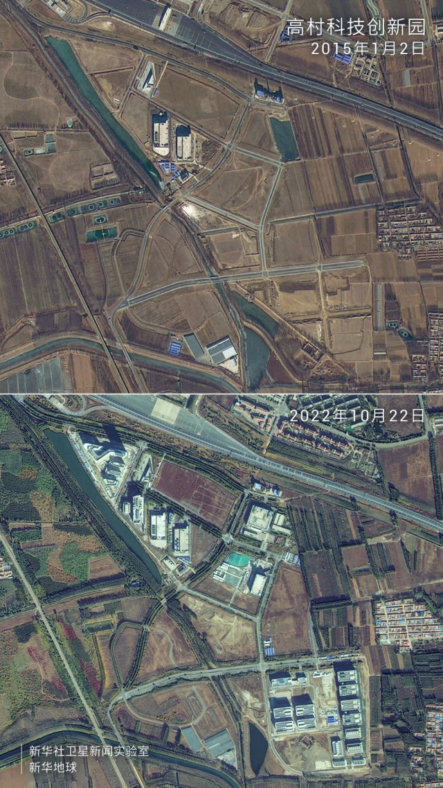 卫星拍摄的高村科技创新园对比图