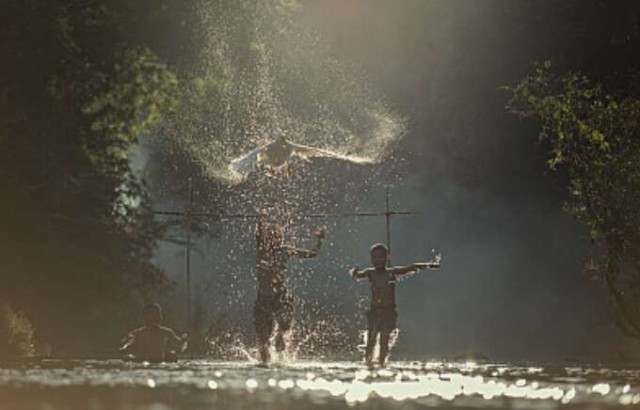 儿童与鹅玩耍。视觉中国供图
