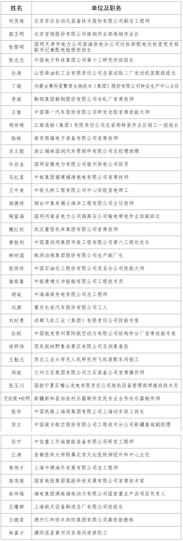 10位“大国工匠年度人物”分别是: