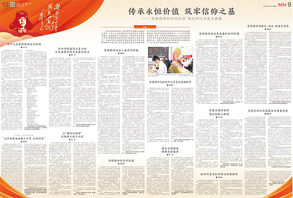 今年是毛泽东等老一辈革命家为雷锋同志题词60周年。3月3日,由共青团中央宣传部指导,中国青年报社、共青团清华大学委员会、中国青年杂志联合主办的“雷锋精神的时代价值”理论研讨会在京举行。与会的部分全国两会代表委员和专家学者从雷锋精神的丰富内涵、时代意蕴等角度进行梳理和解读,青年典型代表现身说法讲述如何传承和发扬雷锋精神,高校学子的发言则提供了一个个让学雷锋活动融入日常、化作经常的鲜活样本,与会专家和优秀青年学子代表面对面的交流和讨论时时碰撞出思想的火花。本期《大思政》特刊特摘登研讨会精彩发言,与广大读者尤其是青年朋友们分享。