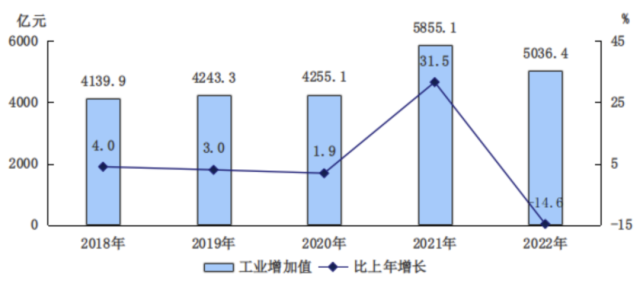 图3 2018-2022年工业增加值及增长速度